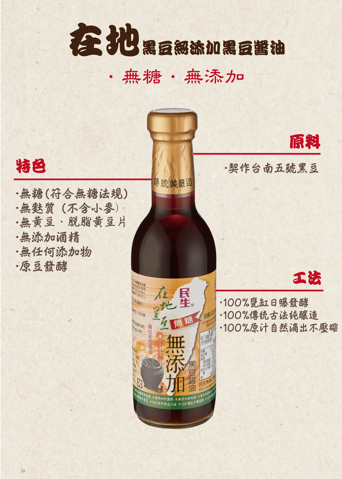 民生在地黑豆無添加醬油